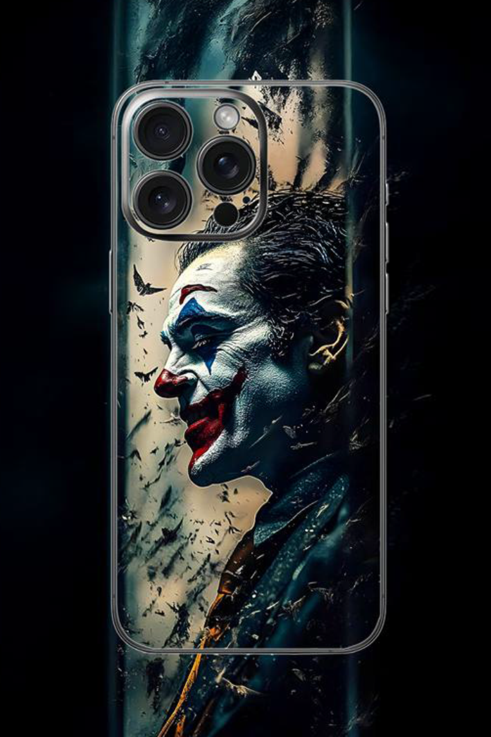 Embrace chaos with the Joker Mobile Skin. Crafted from premium vinyl, this ultra-thin skin gives your phone a bold, edgy look while protecting it from scratches and everyday wear. Designed for a perfect fit on iPhone 12–17 models and Samsung S22–S25 series, it applies smoothly without bubbles and removes cleanly with no sticky residue.